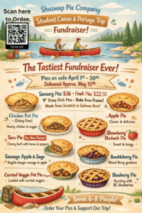 Canoe Trip Fundraiser: Pies Apr 01, 2026Events & ActivitiesRSS Students are going on a canoe trip to Ontario this spring. Help support their trip by ordering (and eating!) delicious pie(s). Return to News & EventsNext Post